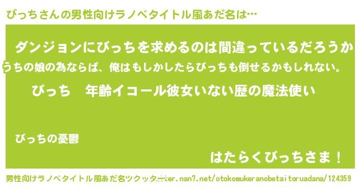 びっちさんの男性向けラノベタイトル風あだ名をツクッター!