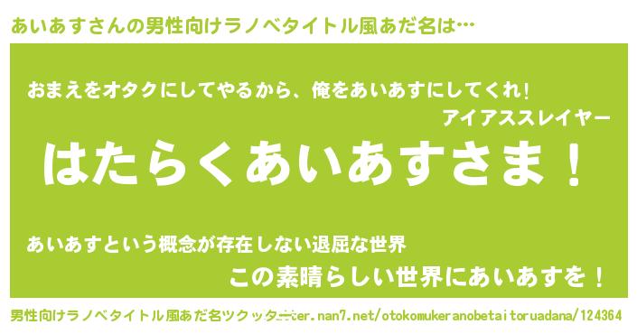 | ヒーロー風カッコイイあだ名 | 『正義の使者あいあす』『仮面アイダー』 |