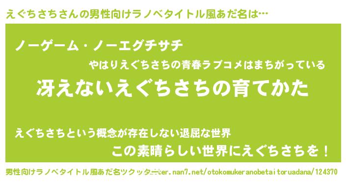 | ヒーロー風カッコイイあだ名 | 『慈愛の使者えぐちさち』『仮面エグダー』 |