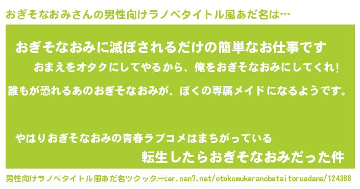 | 女子向けラノベタイトル風あだ名 | 『おぎそなおみの契約王妃』 |