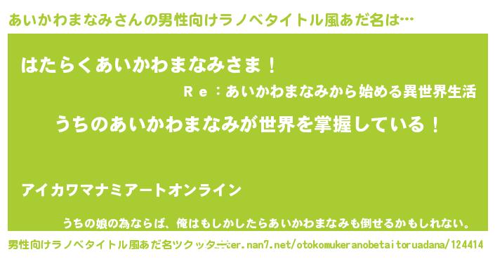 | 意味不明あだ名 | 『あいかわまなみフォーエバー』 |