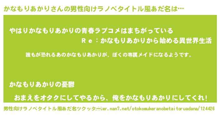 | 意味不明あだ名 | 『永久保存かなもりあかり』 |
