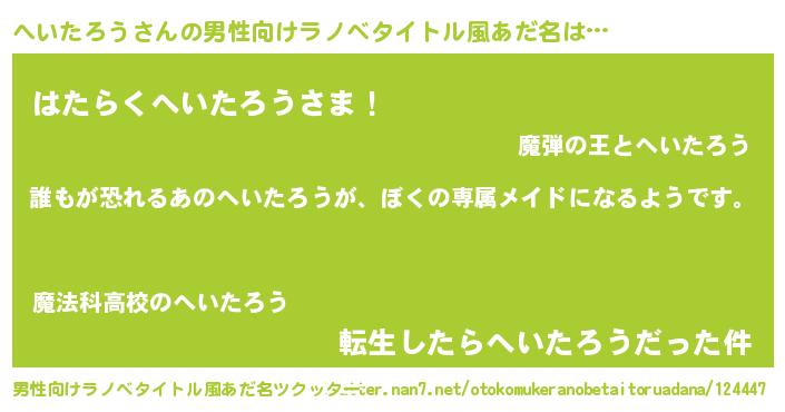 | 意味不明あだ名 | 『永久保存へいたろう』『自称へいたろう』 |