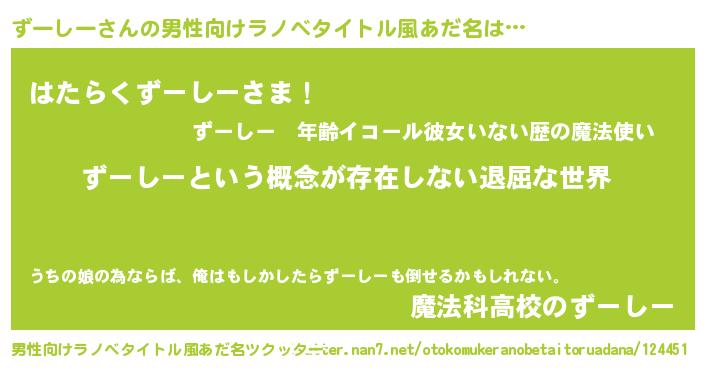 | 胡散臭い通販商品みたいなあだ名 | 『絶対に幸福をもたらす健康食品…その名も「ずーしー」』 |