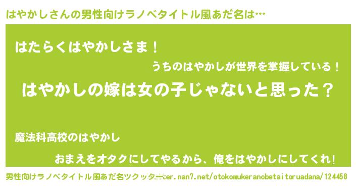 はやかしさんの男性向けラノベタイトル風あだ名をツクッター!