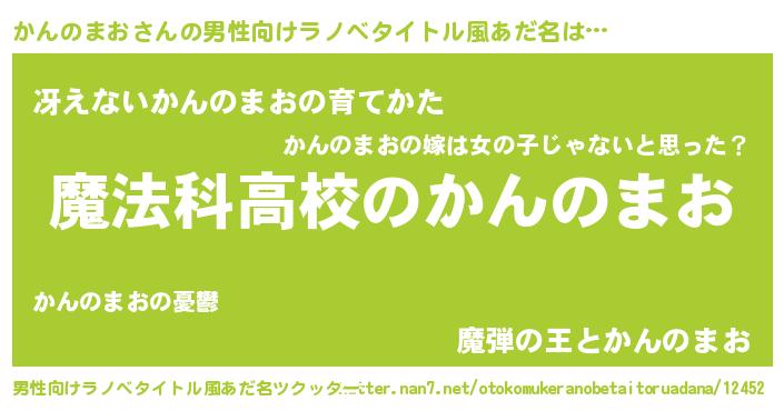 | 女子向けラノベタイトル風あだ名 | 『かんのまおなんてお断りですっ。』 |