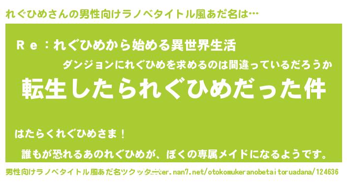| 料理風あだ名 | 『れぐひめごはん』 |