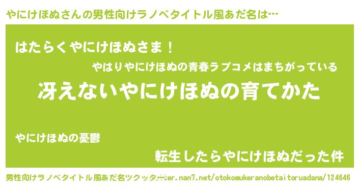 | 胡散臭い通販商品みたいなあだ名 | 『世界が平和になる高級そうな絵画…その名も「やにけほぬ」』 |