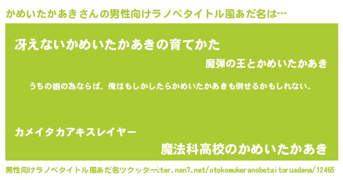 | 意味不明あだ名 | 『かめいたかあきフォーエバー』 |