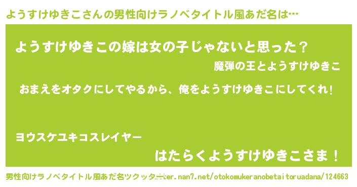 | 女子向けラノベタイトル風あだ名 | 『ようすけゆきこ夫妻のなれそめ』 |
