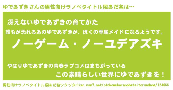 | ヒーロー風カッコイイあだ名 | 『慈愛の使者ゆであずき』『仮面ユデダー』 |