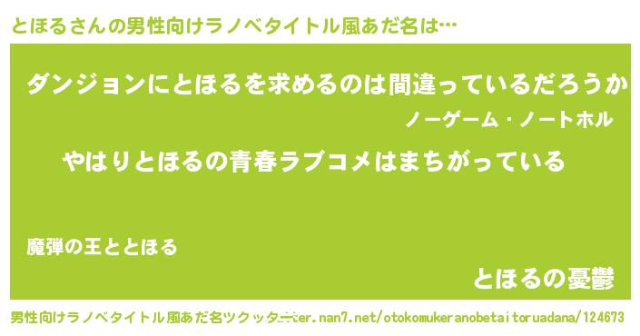 | ヒーロー風カッコイイあだ名 | 『ウルトラとほるマン』『魔戒騎士トホ』 |