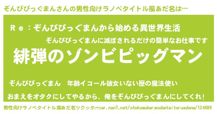 | 胡散臭い通販商品みたいなあだ名 | 『ガンによく効く高麗人参…その名も「ぞんびぴっぐまん」』 |