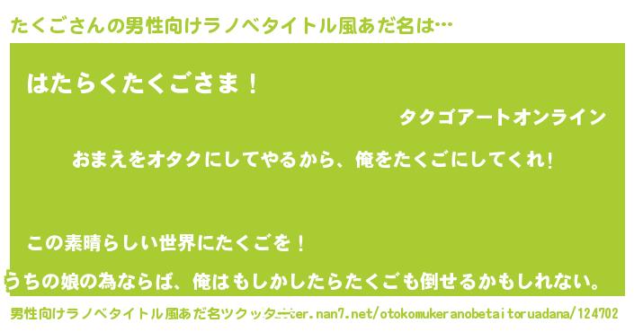 | 意味不明あだ名 | 『眠気覚ましガムたくご味』『自称たくご』 |