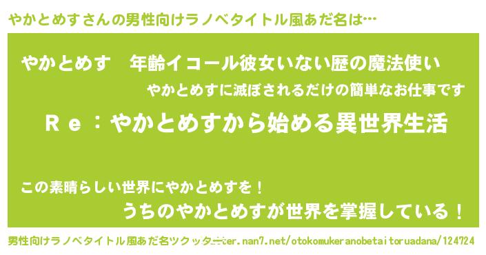 | 女子向けラノベタイトル風あだ名 | 『闇のやかとめす』 |