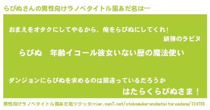 | 女子向けラノベタイトル風あだ名 | 『らぴぬの玉の輿計画!』『らぴぬ恋絵巻』 |