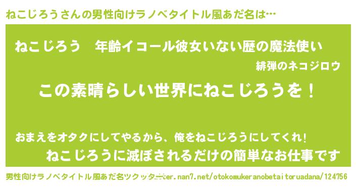 | 意味不明あだ名 | 『住所不定無職ねこじろう(68歳)』 |