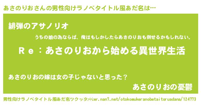 | 女子向けラノベタイトル風あだ名 | 『闇のあさのりお』 |