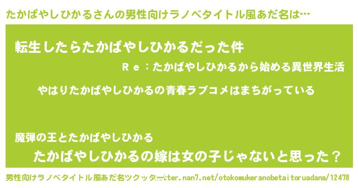 | ファンタジー風あだ名 | 『エターナルタカバヤシヒカルー』 |