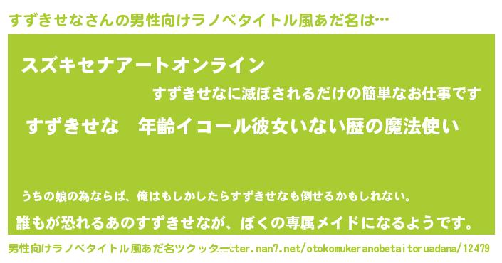 | 女子向けラノベタイトル風あだ名 | 『すずきせなの玉の輿計画!』 |