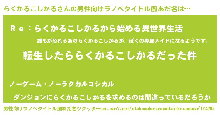 | 胡散臭い通販商品みたいなあだ名 | 『テレビで話題の高麗人参…その名も「らくかるこしかる」』 |