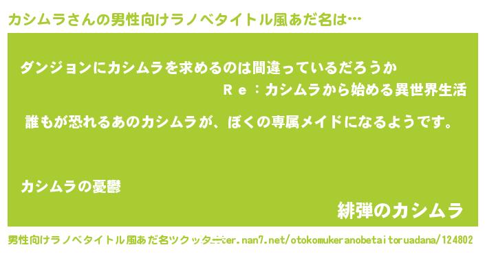 | 女子向けラノベタイトル風あだ名 | 『異世界でカフェカシムラを開店しました。』 |