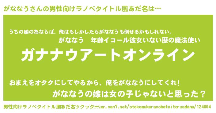 | 女子向けラノベタイトル風あだ名 | 『誰かこのがななうを説明してください! ~契約から始まるウェディング~』 |