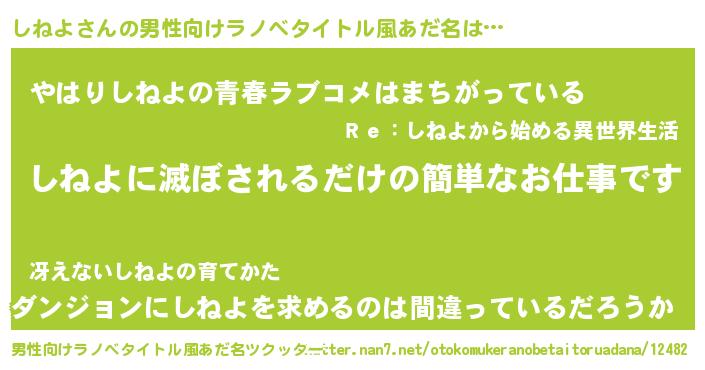 | ヘコむあだ名 | 『酢こんぶ』『しねお』『しねもー』 |