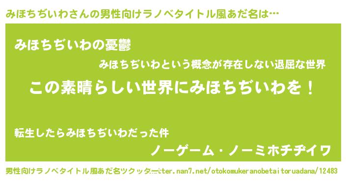 | 女子向けラノベタイトル風あだ名 | 『乙女ゲームの破滅フラグしかない悪役みほちぢいわに転生してしまった…』 |