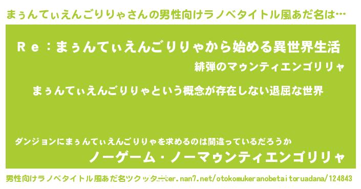 | 胡散臭い通販商品みたいなあだ名 | 『絶対に幸福をもたらす招き猫…その名も「まぅんてぃえんごりりゃ」』 |