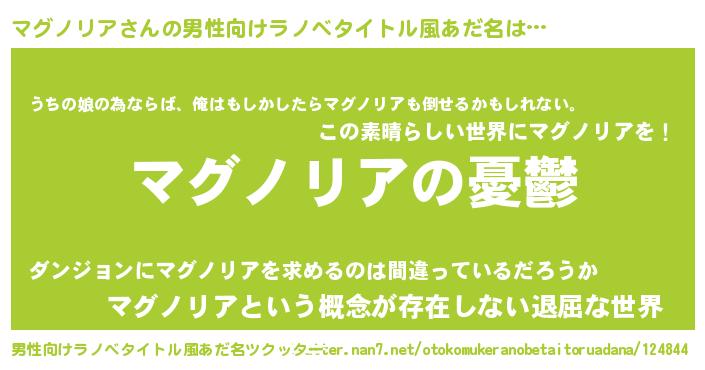 | 胡散臭い通販商品みたいなあだ名 | 『必ず成功するブレスレット…その名も「マグノリア」』 |