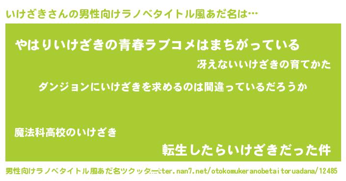 | 女子向けラノベタイトル風あだ名 | 『いけざきの卵を拾いまして』 |