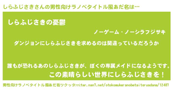 | 意味不明あだ名 | 『とにかく怪しいしらふじさき』 |