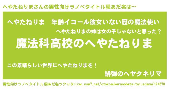 | 女子向けラノベタイトル風あだ名 | 『へやたねりまアンティーク』 |
