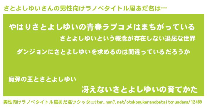 | 意味不明あだ名 | 『とにかく怪しいさとよしゆい』 |