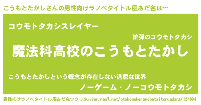 | 意味不明あだ名 | 『自称こうもとたかし』 |