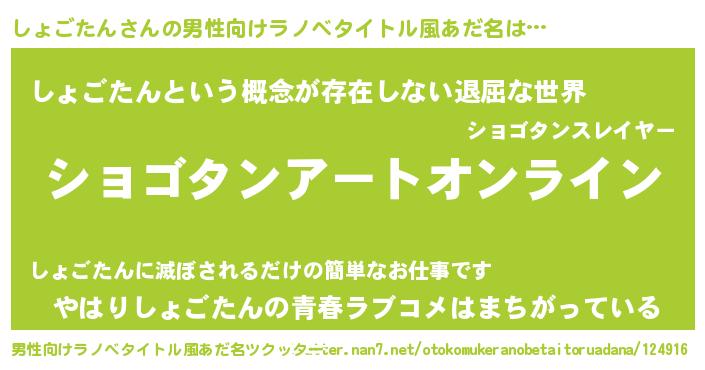 しょごたんさんの男性向けラノベタイトル風あだ名をツクッター!