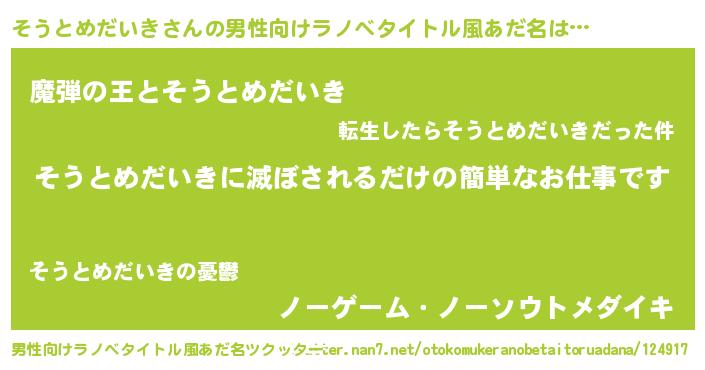 | 伝説のあだ名 | 『救世主となる占い師そうとめだいき』 |