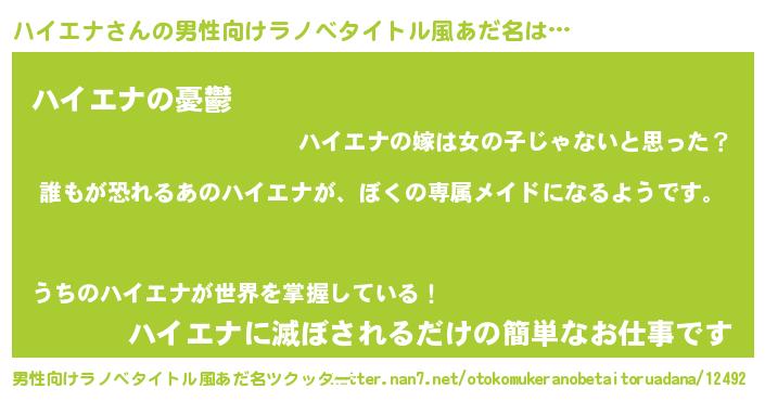 | ヘコむあだ名 | 『ハイエナ(爆)』『ハイっふぃ~』 |