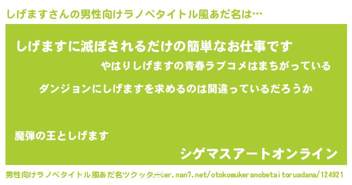 | 胡散臭い通販商品みたいなあだ名 | 『信頼と実績のサプリメント…その名も「しげます」』 |