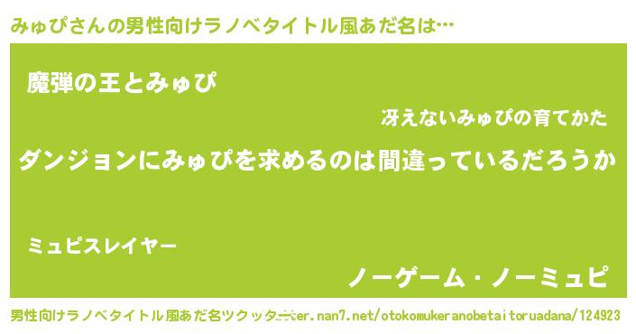 | 女子向けラノベタイトル風あだ名 | 『みゅぴの卵を拾いまして』 |