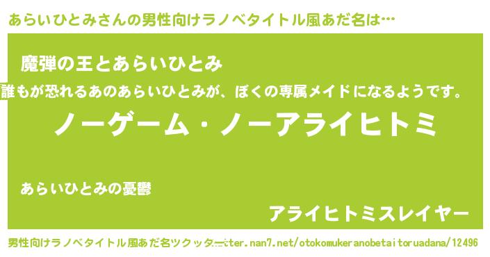 | 女子向けラノベタイトル風あだ名 | 『死神あらいひとみの再婚』 |