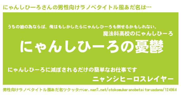 | 女子向けラノベタイトル風あだ名 | 『(仮)にゃんしひーろのやんごとなき事情』 |