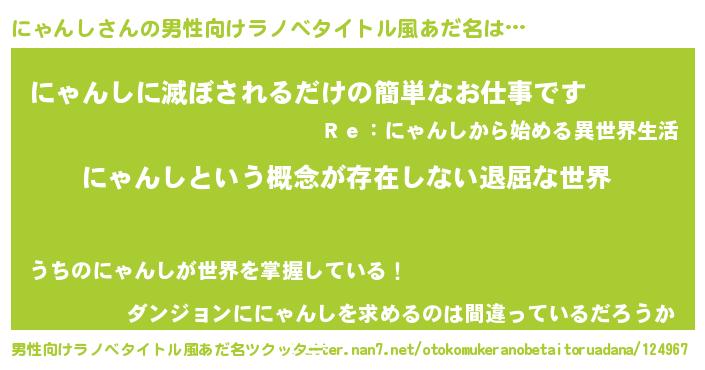 | ヘコむあだ名 | 『にゃんし(笑)』『にゃぷりん』 |