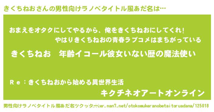 | 女子向けラノベタイトル風あだ名 | 『きくちねおの玉の輿計画!』 |