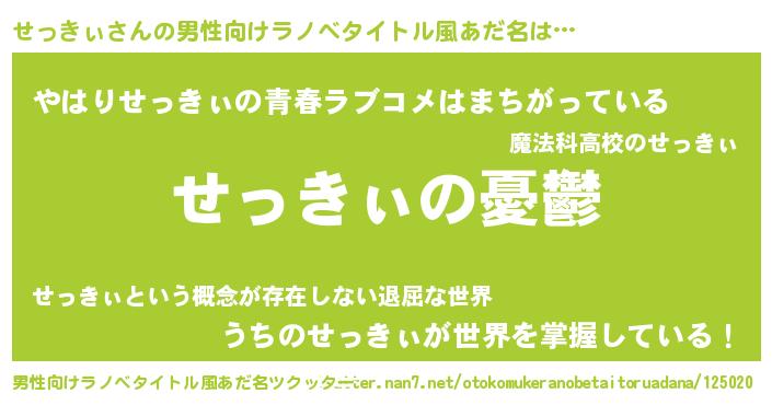| 女子向けラノベタイトル風あだ名 | 『(仮)せっきぃのやんごとなき事情』 |