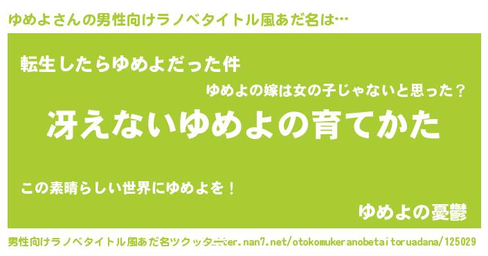 | 胡散臭い通販商品みたいなあだ名 | 『モテモテ間違いなし霊験あらたかなお札…その名も「ゆめよ」』 |