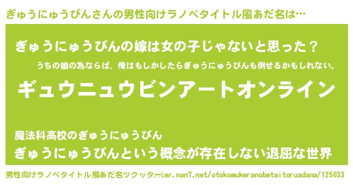 | 女子向けラノベタイトル風あだ名 | 『誰かこのぎゅうにゅうびんを説明してください! ~契約から始まるウェディング~』 |