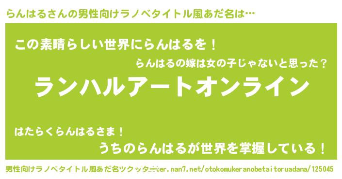 | 女子向けラノベタイトル風あだ名 | 『らんはる姫と円卓の騎士』 |
