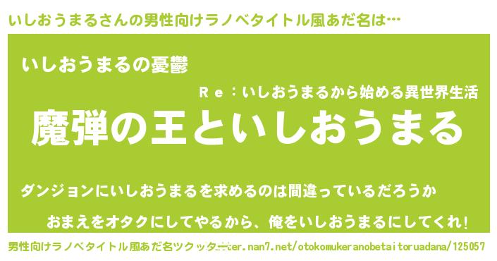 | 女子向けラノベタイトル風あだ名 | 『乙女ゲームの破滅フラグしかない悪役いしおうまるに転生してしまった…』 |